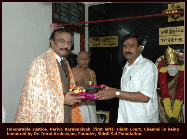 Dr. Durai Arulneyam is an ardent devotee of Shri Shirdi Sai Baba. Constructed Two Temples for Shri Shirdi Sai Baba. at Chennai. He is the Founder and Managing trustee of Shirdi Sai Foundation, a public charitable trust, which provides free meals to one and all every Thursday. He had undergone spiritual training under different spiritual missionns. He has written and published a book in Tamil and also edits a monthly magazine ( English & Tamil ) Shri Shirdi Sai Baba Yugam. He has also started a spiritual mission in the name of “Shri Shirdi Sai Yugam” to propagate Shirdi Sai Baba’s divinity around the world.